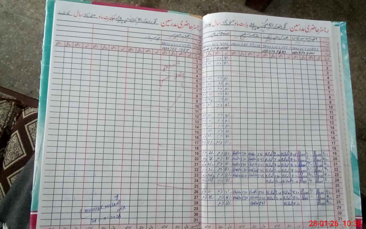 | 38**** | Ej**** Ha**** | N Q | Regular | 0 | 0 | 0 | 0 | 0 | 0 | 0 | 0 | 0 | Absent (Un-Authorized) |