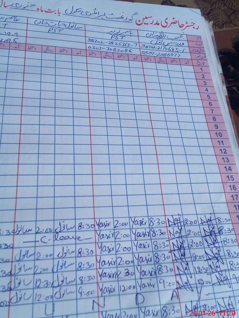 | Name: Na**** Kh**** Designation: (School Headmaster's/Headmistress's) PST Phone/Cell Number: 03**** |
