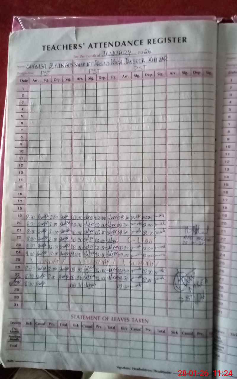 | Name: Sh**** Za**** Designation: (School Headmaster's/Headmistress's) HEAD MISTRESS Phone/Cell Number: 03**** |