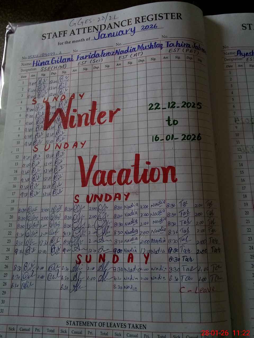 | No. of Students Present - Female | 0 | 0 | 28 | 20 | 17 | 19 | 24 | 15 | 18 | 21 | 271 | |||||