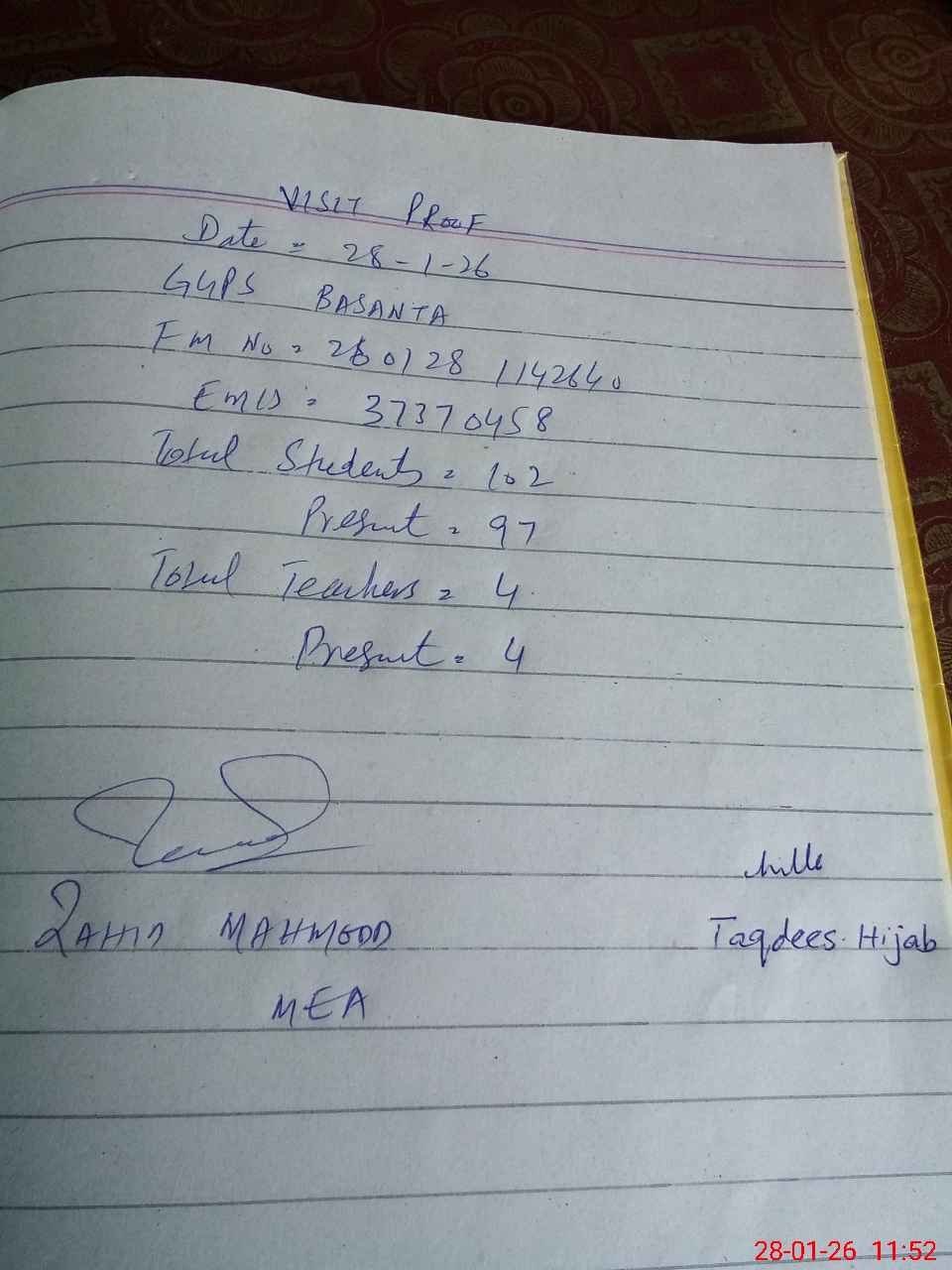| EMIS Code: 37370458 | Name of School: GGPS BASANTA | |||