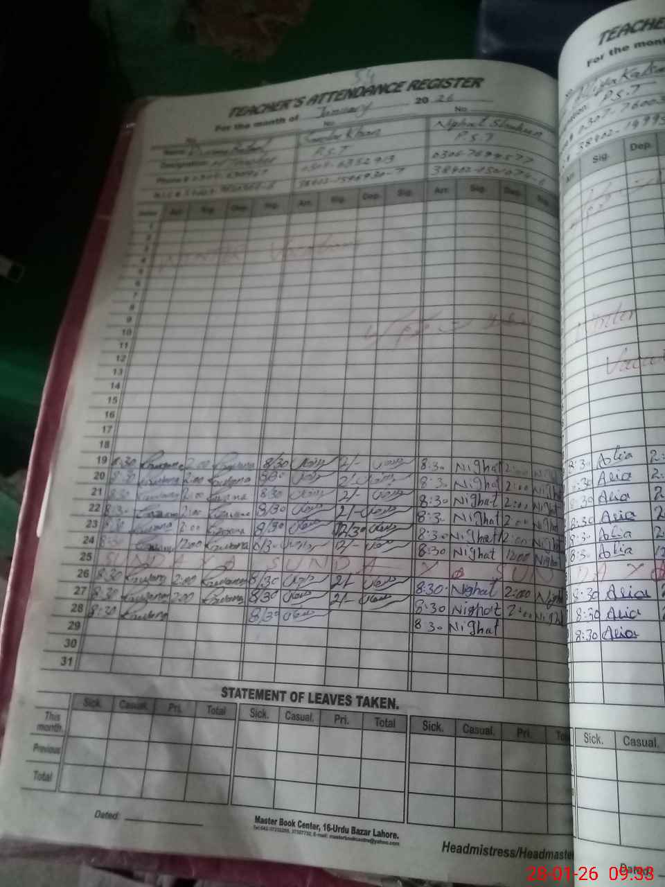 | Name: RI**** BA**** Designation: (School Headmaster's/Headmistress's) PST Phone/Cell Number: 03**** |