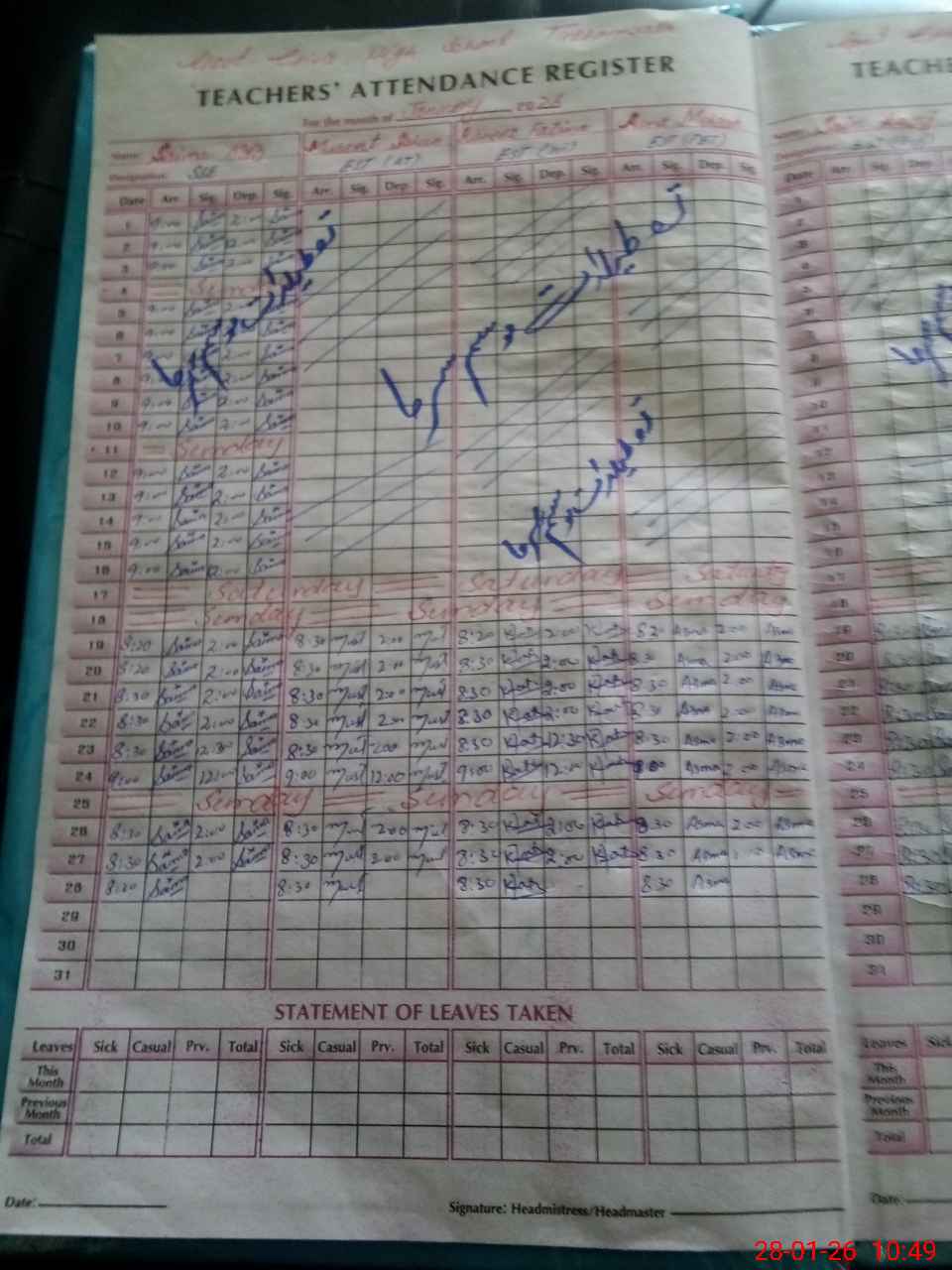 | Leave | Duty | Absent | Maternity | Medical | Ex- Pak |