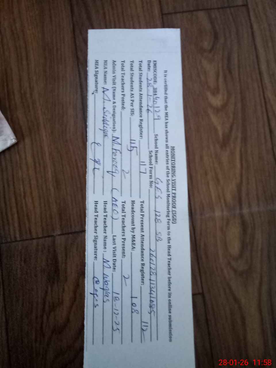 | EMIS Code: 38440129 | Name of School: GES CHAK NO.128 SB | |||
