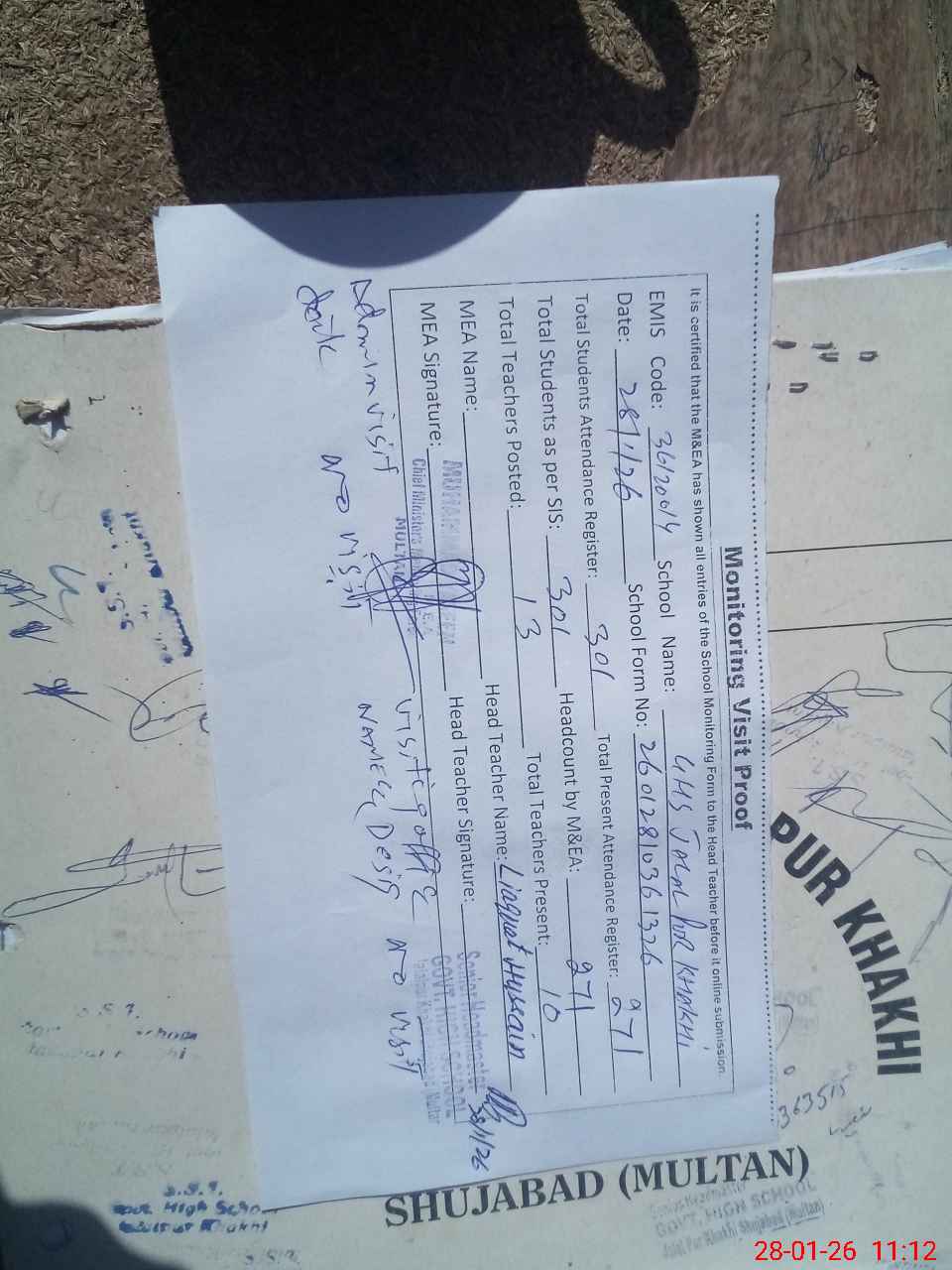 | EMIS Code: 36120014 | Name of School: GHS JALAL PUR KHAKI SHUJABAD | |||