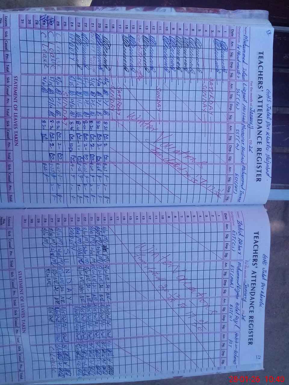 | 36**** | Mu**** Is**** | Sr. Headmaster | Regular | 3 | 0 | 0 | 0 | 0 | 0 | 0 | 0 | 3 | Casual |