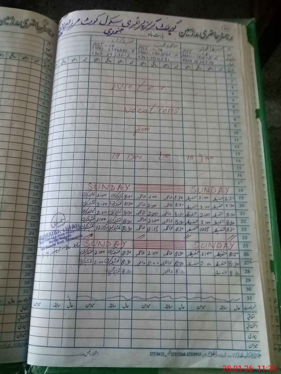| Name: HA**** IJ**** Designation: (School Headmaster's/Headmistress's) PST/PTC/JV Phone/Cell Number: 03**** |