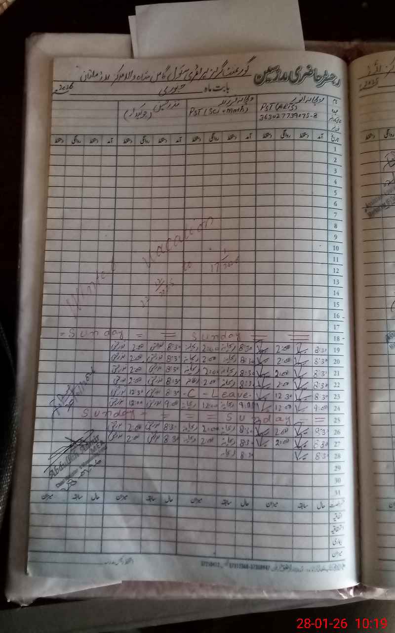 | Remarks (Use Separate Page if Required): roznamcha of students not maintained | |||||