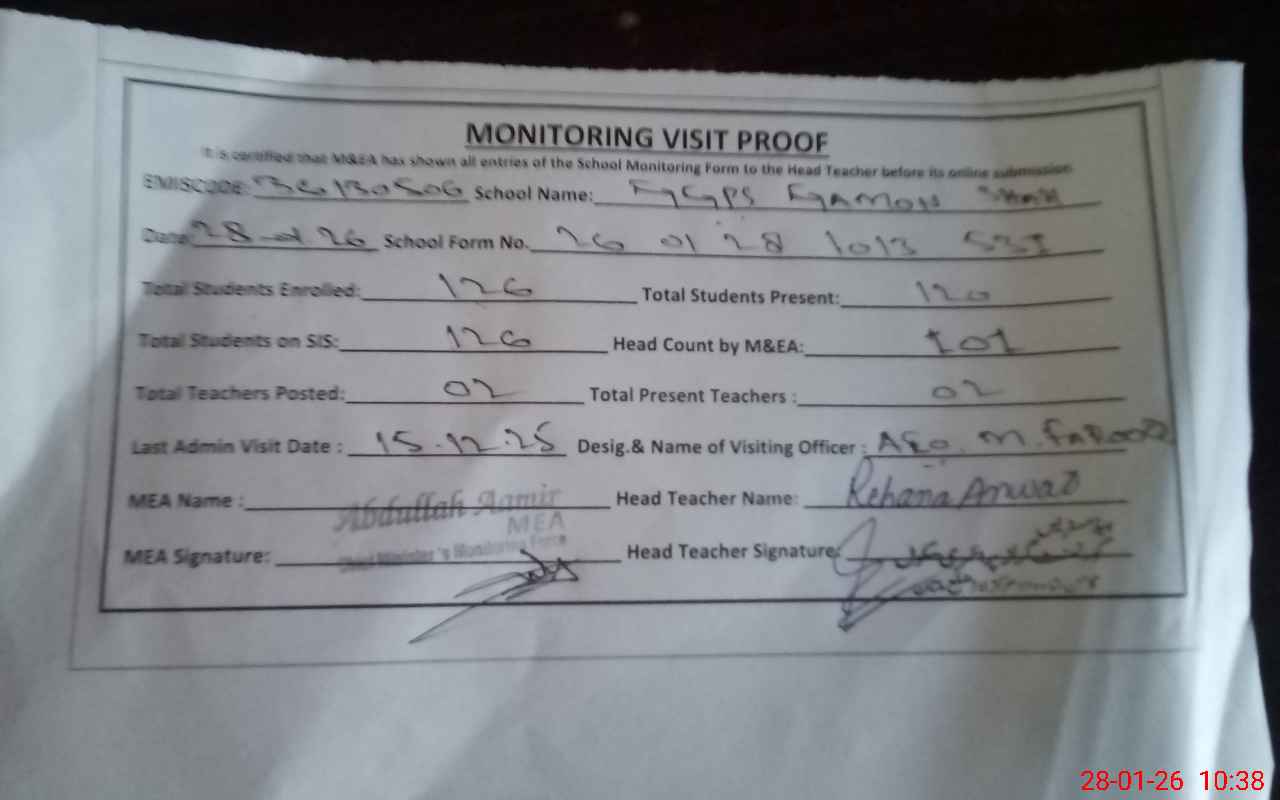 | EMIS Code: 36130506 | Name of School: GGPS GAMON SHAH WALA | |||