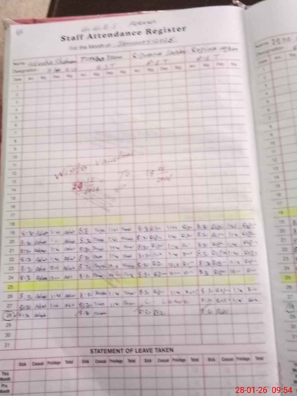 | Monitoring Date: 28-01-2026 | Start Time: 28-01-2026 08:59 AM | End Time: 28-01-2026 09:58 AM | Name of MEA: Za**** Ab**** | |