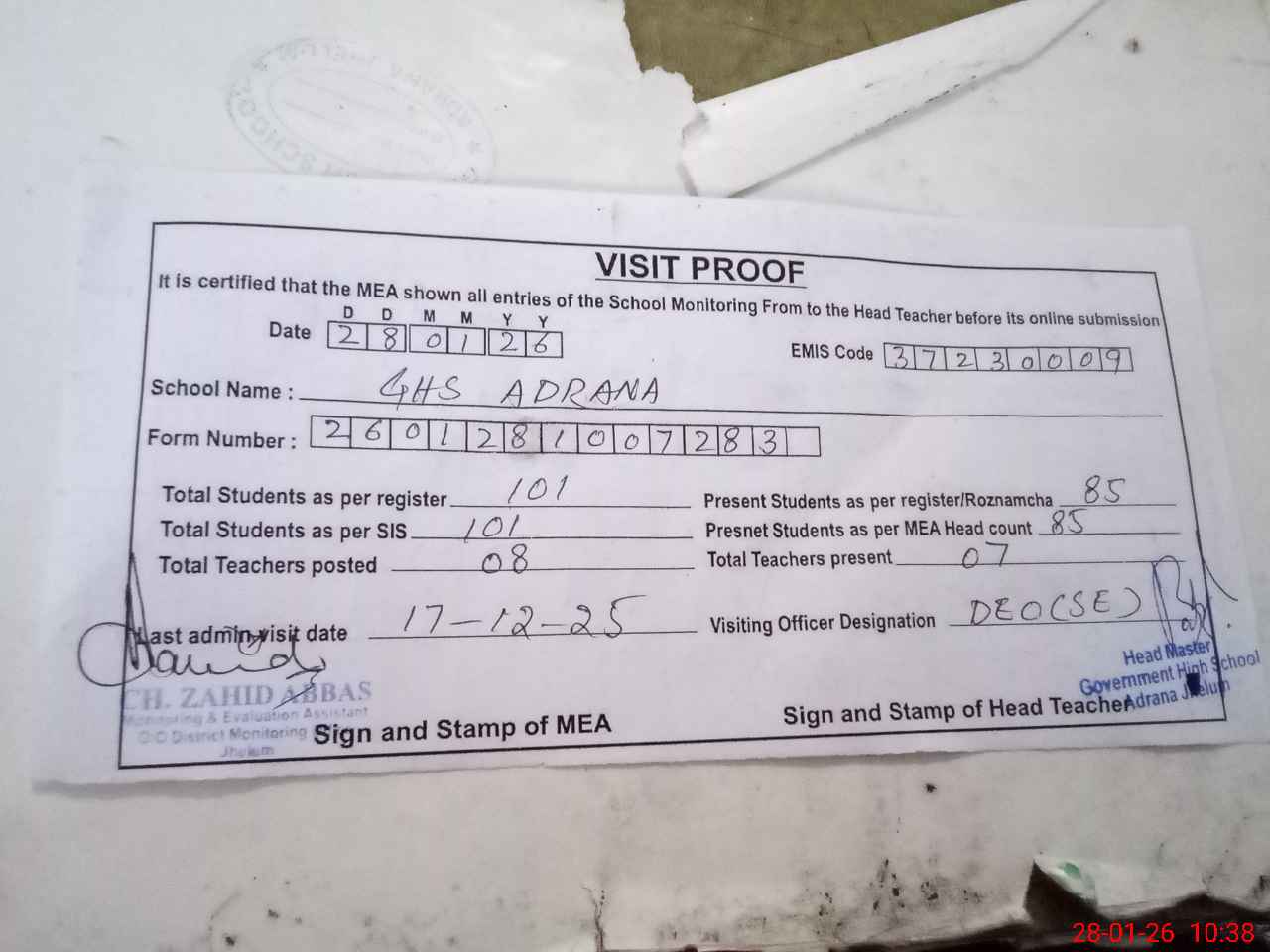 | EMIS Code: 37230009 | Name of School: GHS ADRANA | |||