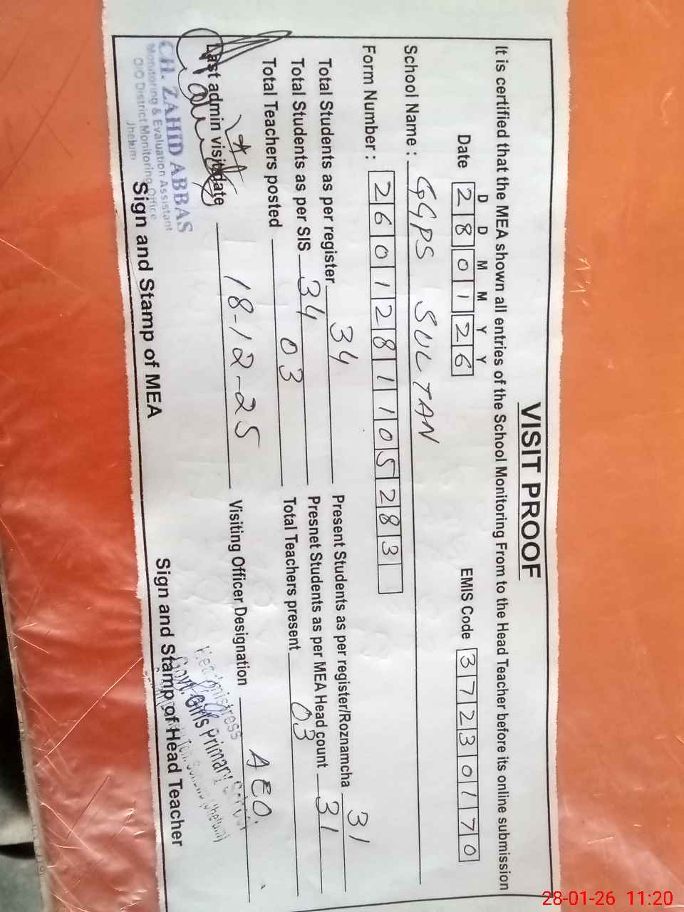 | EMIS Code: 37230170 | Name of School: GGPS SULTAN | |||