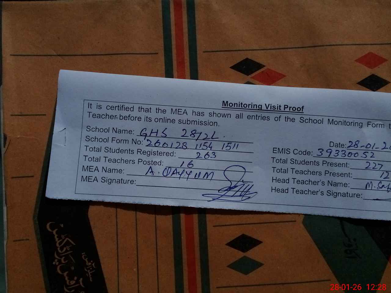 | EMIS Code: 39330052 | Name of School: GHS CHAK NO.28/2-L OKARA | |||