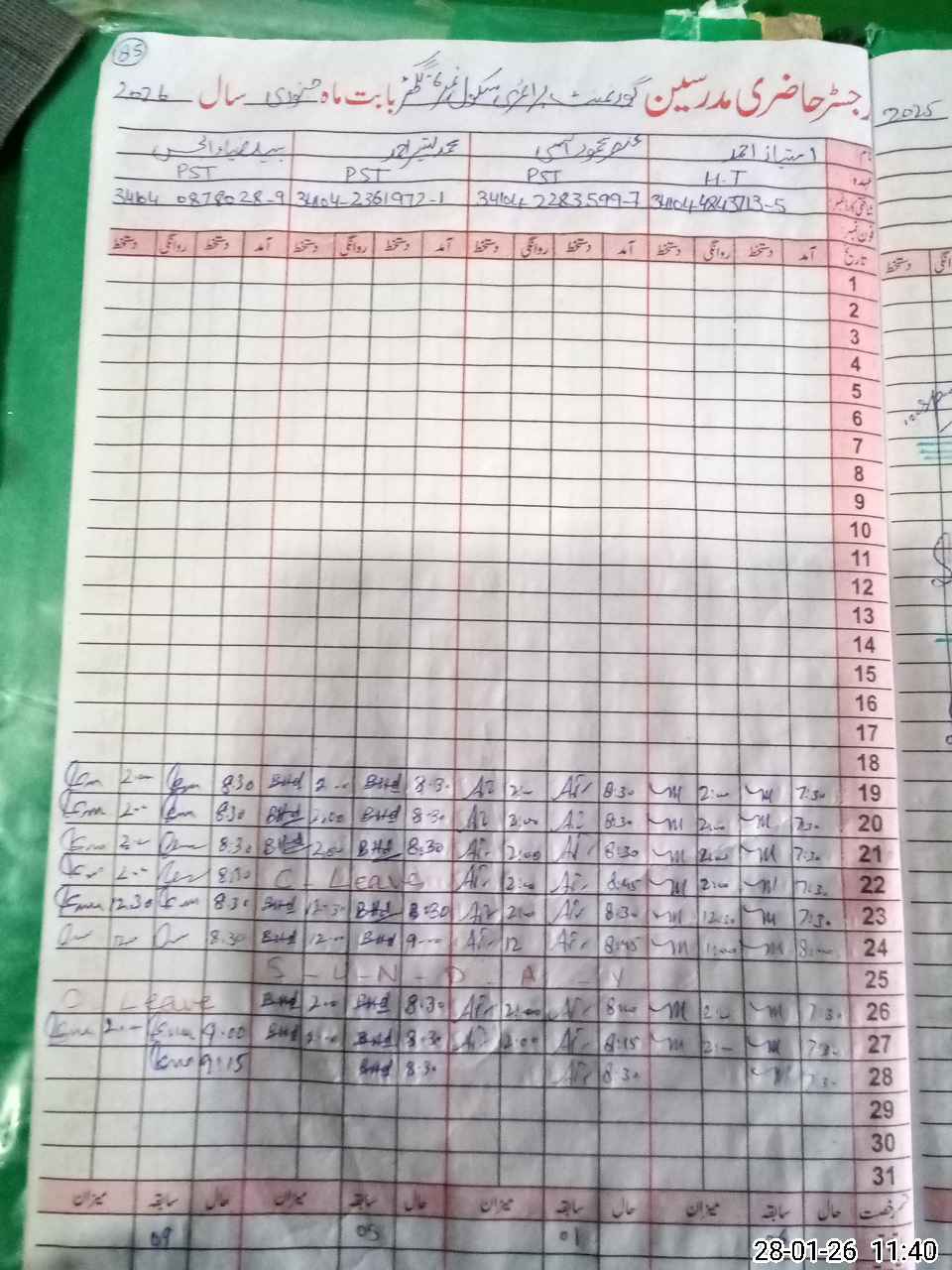 | 34**** | Ma**** Kh**** | PST Arts | Regular | 0 | 0 | 0 | 0 | 0 | 0 | 0 | 0 | 0 | Maternity |