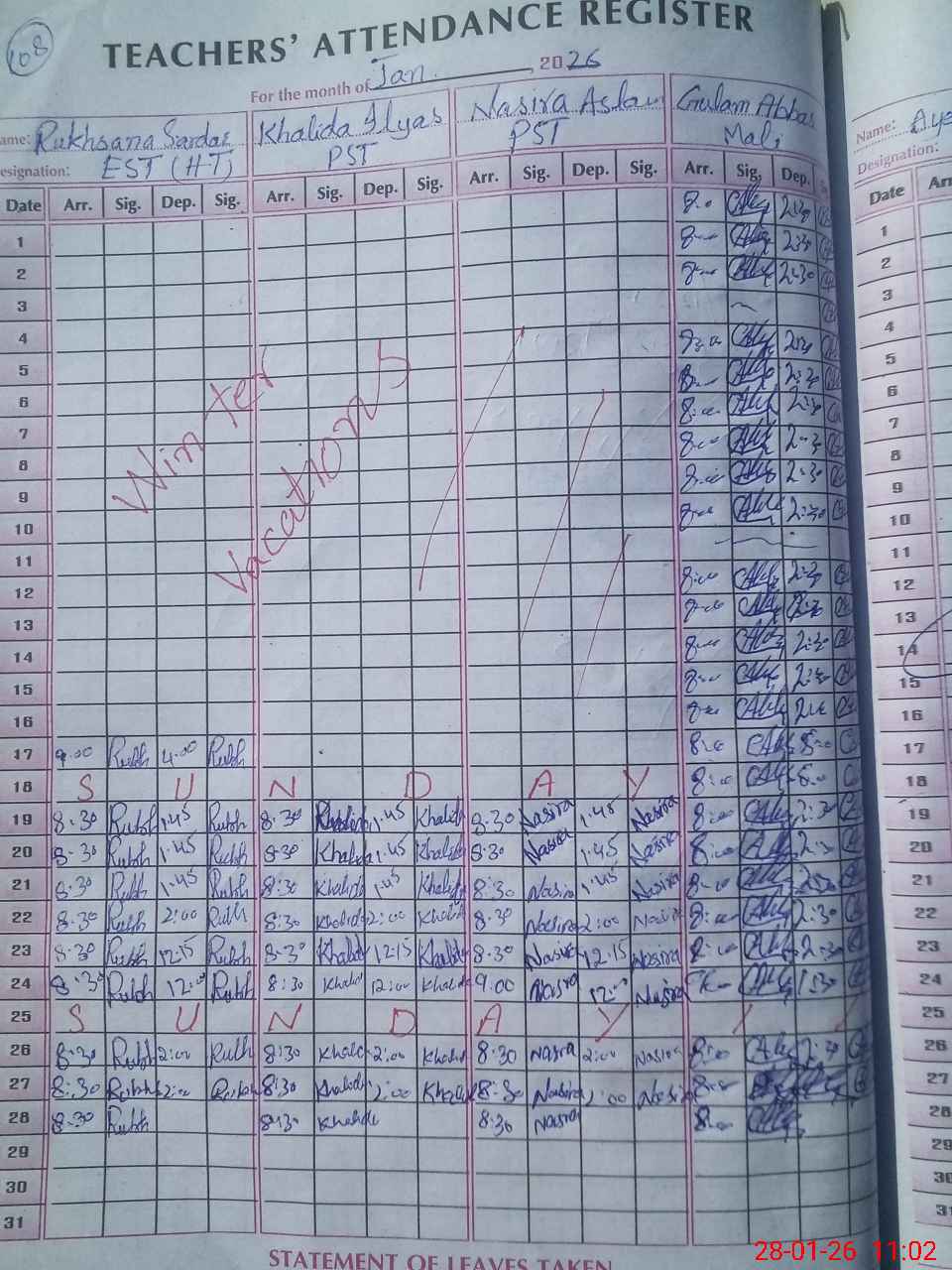 | CNIC | Full Name | Designation | R/C | Absence During Last Calender Month |