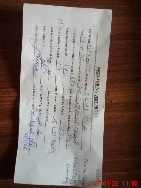 | EMIS Code: 31320073 | Name of School: GGHS CHAK 31/A | |||