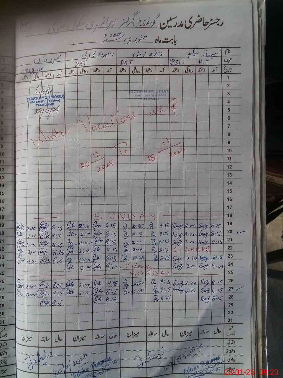| Name: Sh**** Be**** Designation: (School Headmaster's/Headmistress's) PST Phone/Cell Number: 03**** |