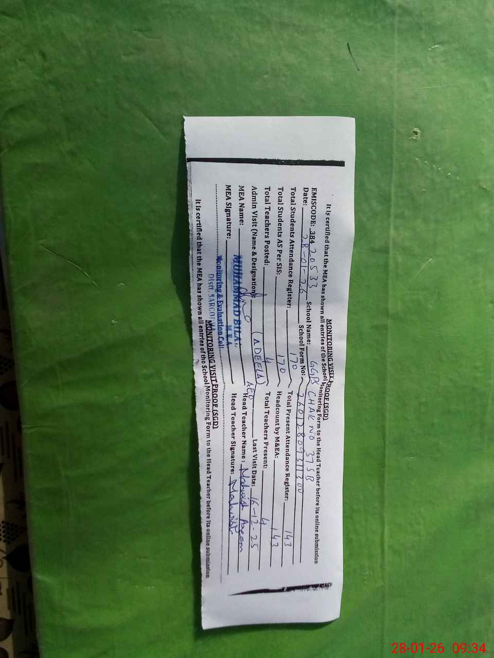 | EMIS Code: 38420533 | Name of School: GGPS NO.2 CHAK NO.37 SB | |||