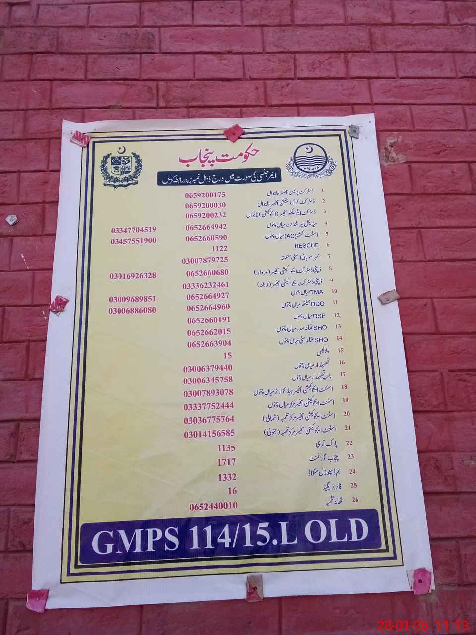 | EMIS Code: 36430332 | Name of School: GGPS 114/15-L QADEEM, MIAN CHANNU | |||