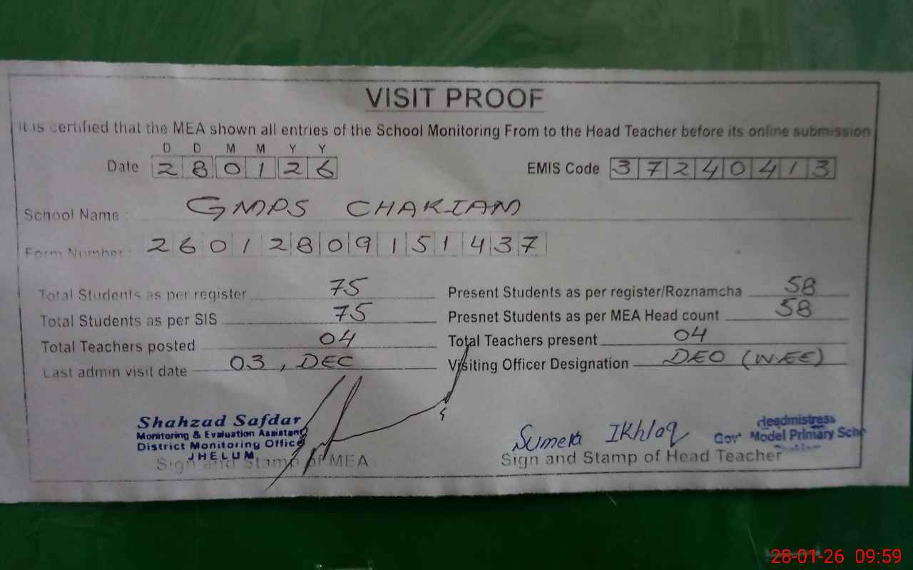 | Attendance Register | Head Teacher | MEA with School | Visit Proof |