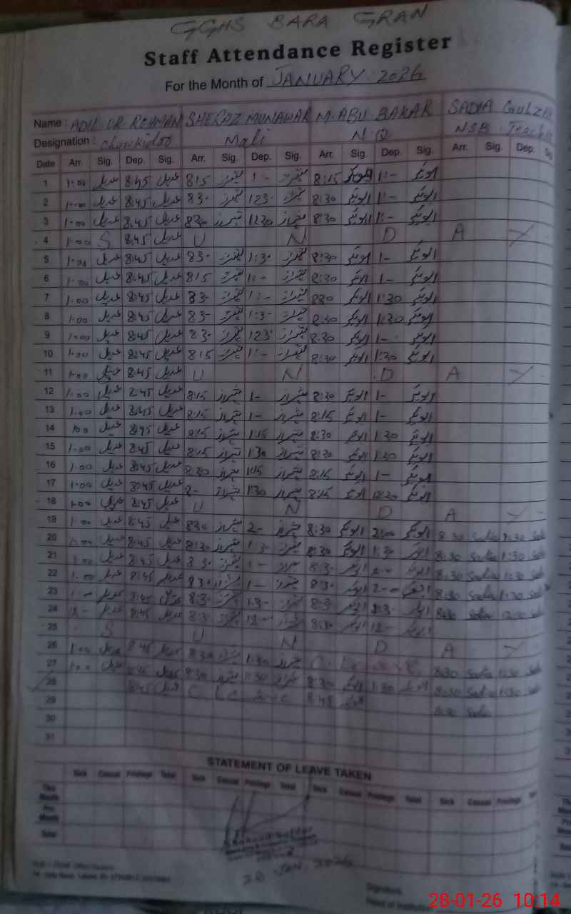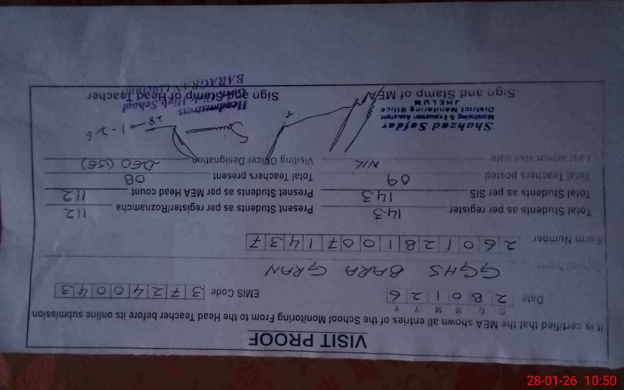 | EMIS Code: 37240043 | Name of School: GGHS BARA GRAN | |||