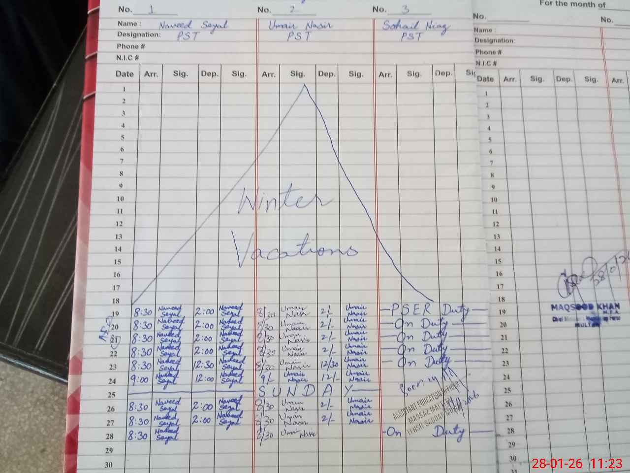 | CNIC | Full Name | Designation | R/C | Absence During Last Calender Month |