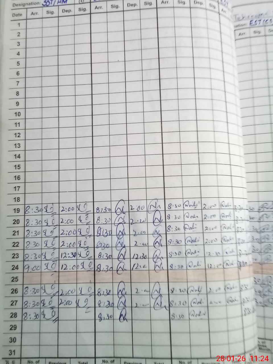 | Sr.No. | Visit Date | Designation | ||