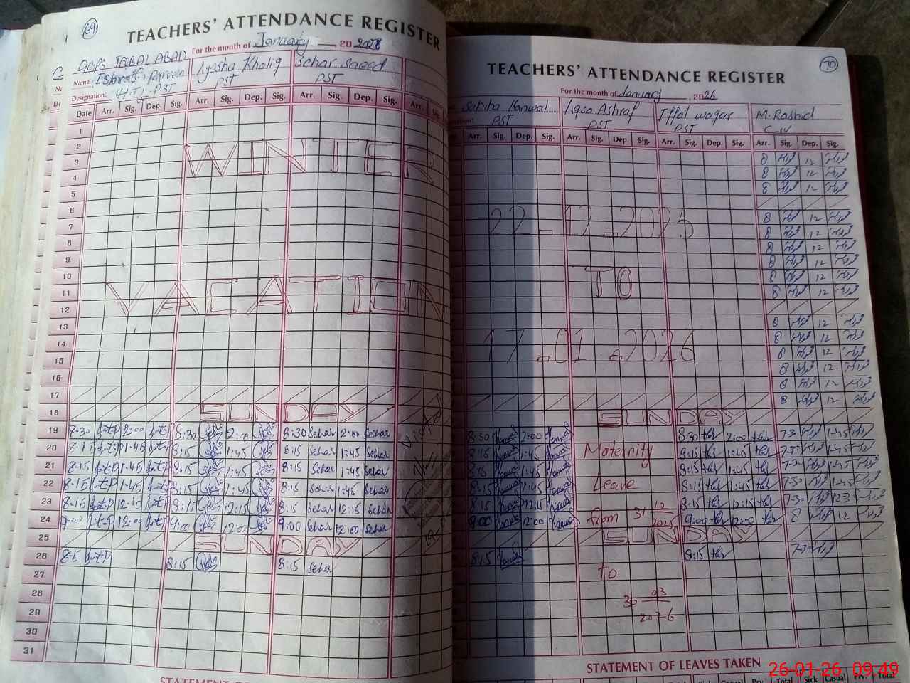 | Leave | Duty | Absent | Maternity | Medical | Ex- Pak |
