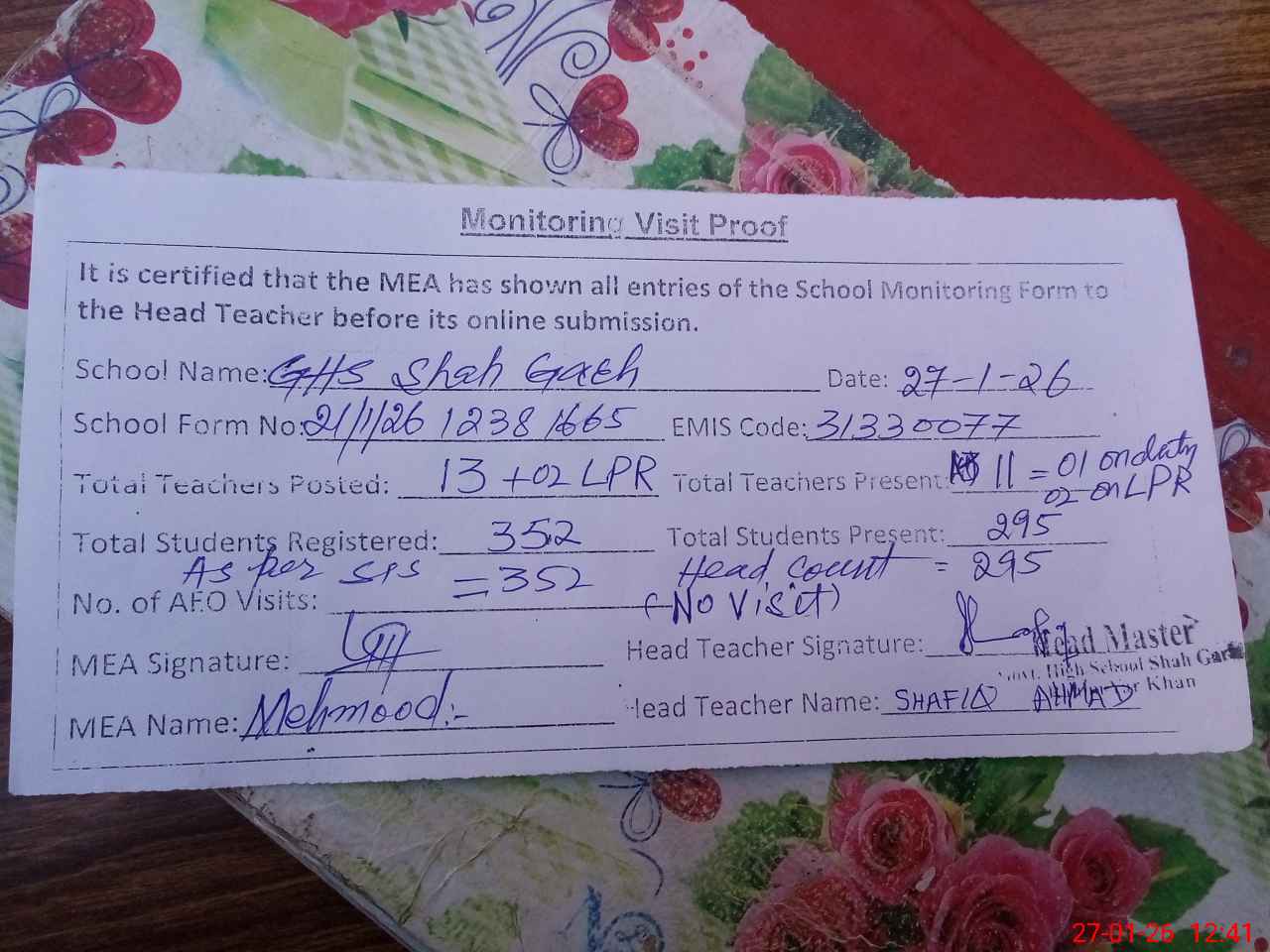 | EMIS Code: 31330077 | Name of School: GHS SHAH GARH | |||