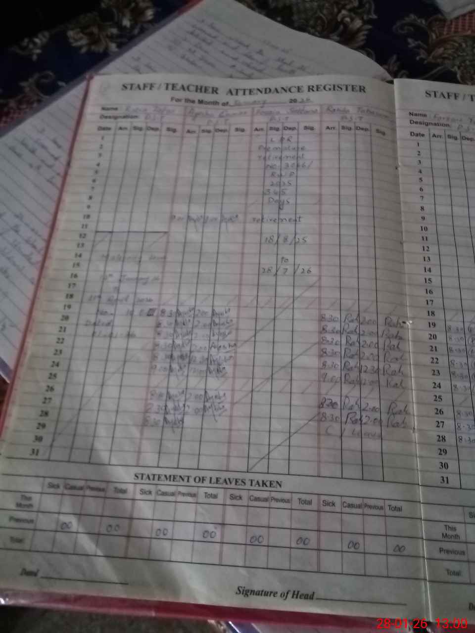 | 37**** | Ra**** Za**** | PST Science/Maths | Regular | 0 | 0 | 0 | 0 | 0 | 0 | 0 | 0 | 0 | Maternity |