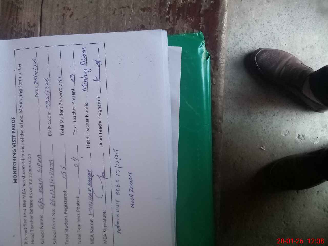 | Certified that this School was Inspected by the Undersigned MEA/DMO Today and the Information Stated Above is as Per Record. | |||||