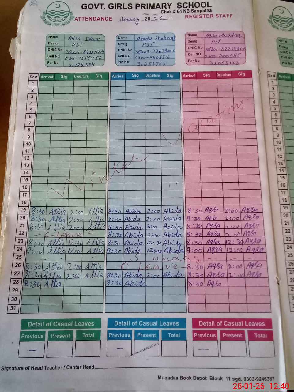 | Name: AT**** IR**** Designation: (School Headmaster's/Headmistress's) PST Phone/Cell Number: 03**** |