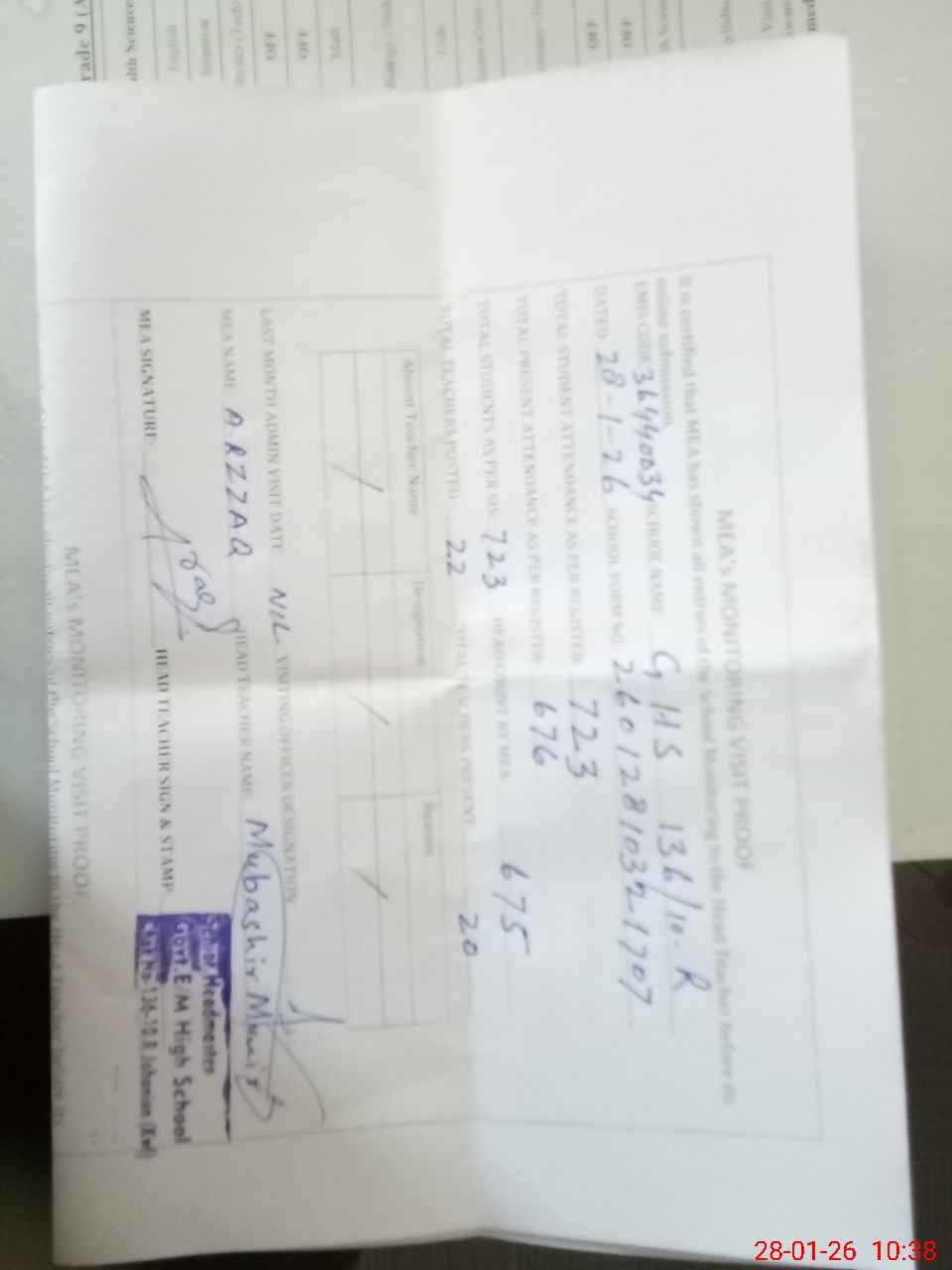 | Certified that this School was Inspected by the Undersigned MEA/DMO Today and the Information Stated Above is as Per Record. | |||||