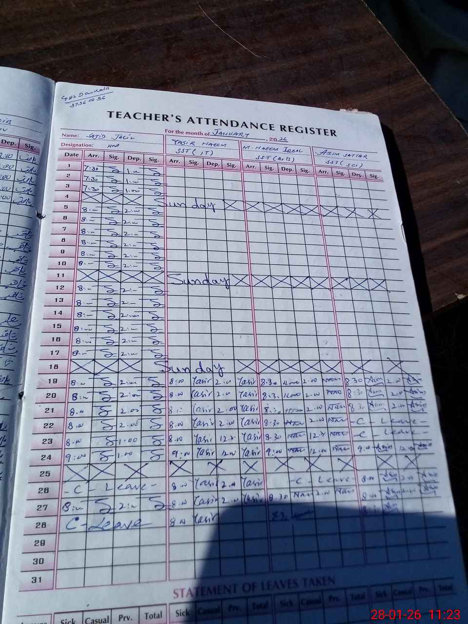 | 37**** | Sa**** Ja**** | SST Science | Regular | 0 | 0 | 0 | 0 | 0 | 0 | 0 | 0 | 0 | Casual |