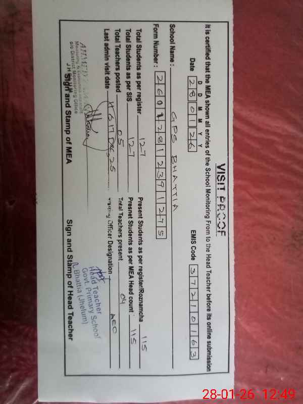 | EMIS Code: 37210163 | Name of School: GPS BHATTIA | |||