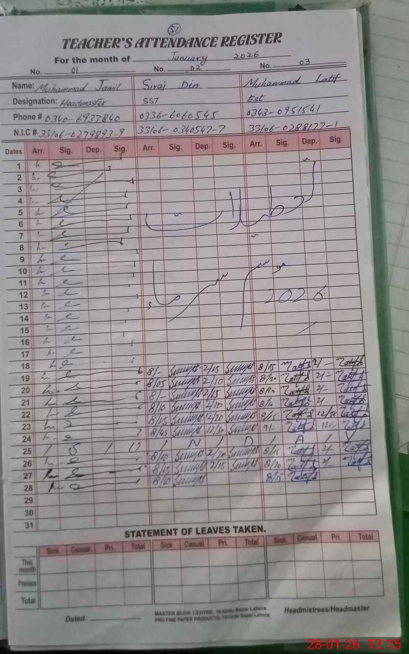 | Name: Mu**** Ja**** Designation: (School Headmaster's/Headmistress's) SST (GENERAL) Phone/Cell Number: 03**** |