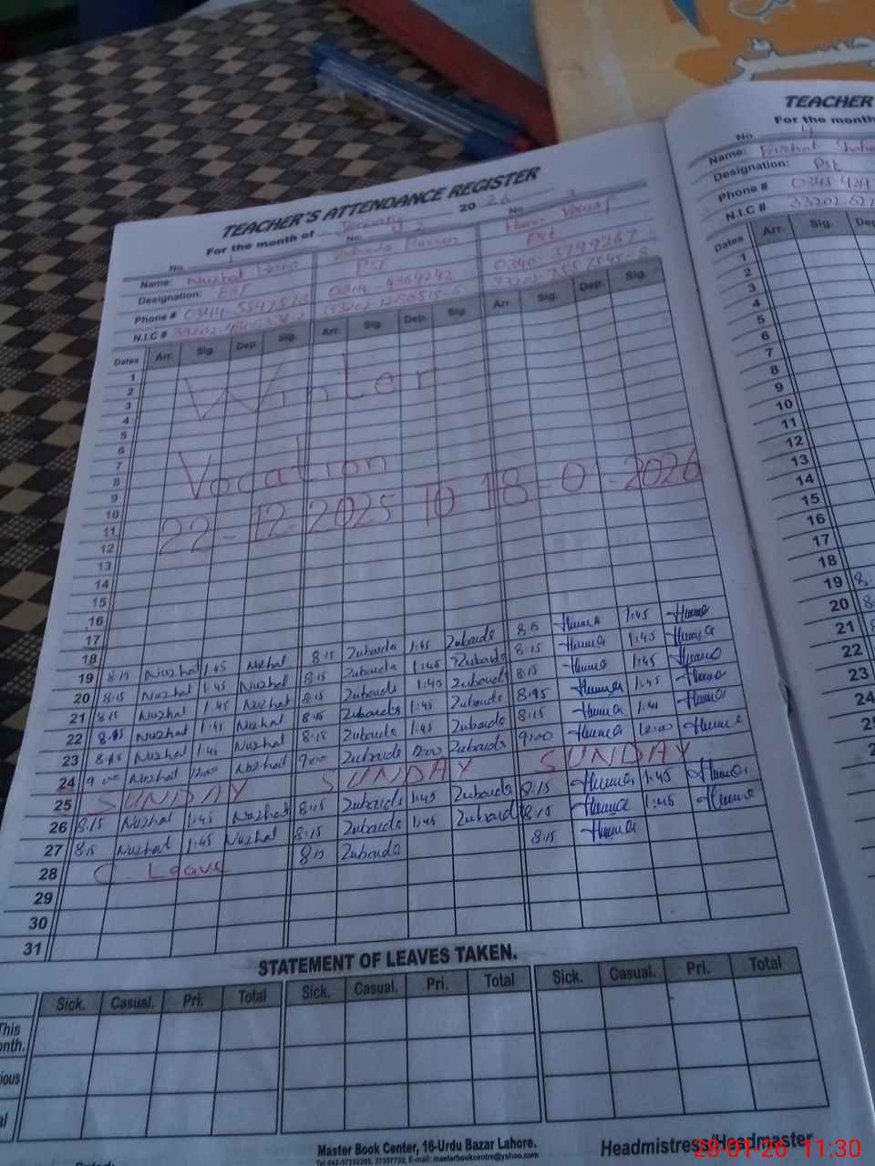 | 33**** | Nu**** Ba**** | EST English | Regular | 0 | 0 | 0 | 0 | 0 | 0 | 0 | 0 | 0 | Absent (Un-Authorized) |