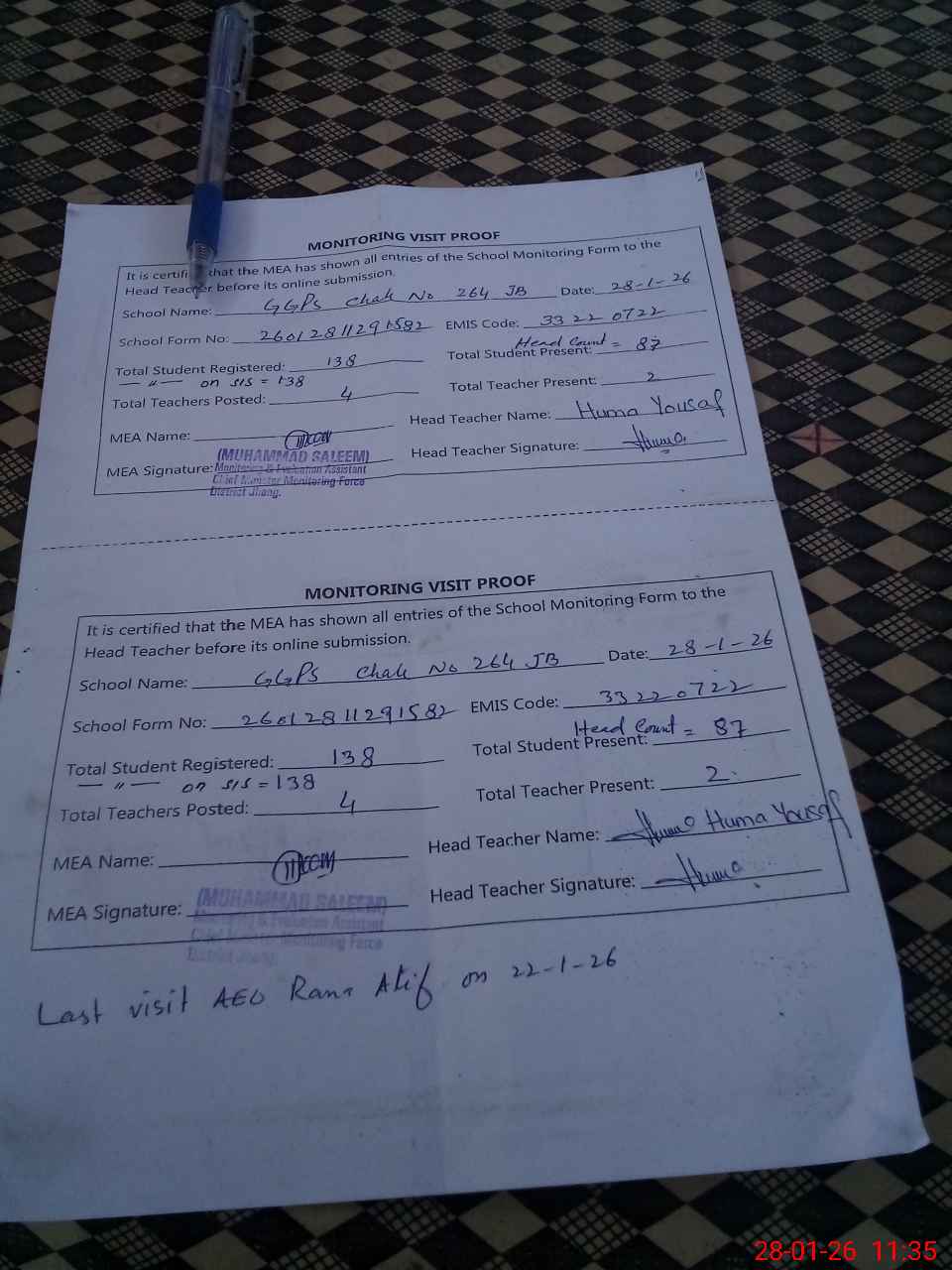 | EMIS Code: 33220722 | Name of School: GGPS CHAK NO 264 JB | |||