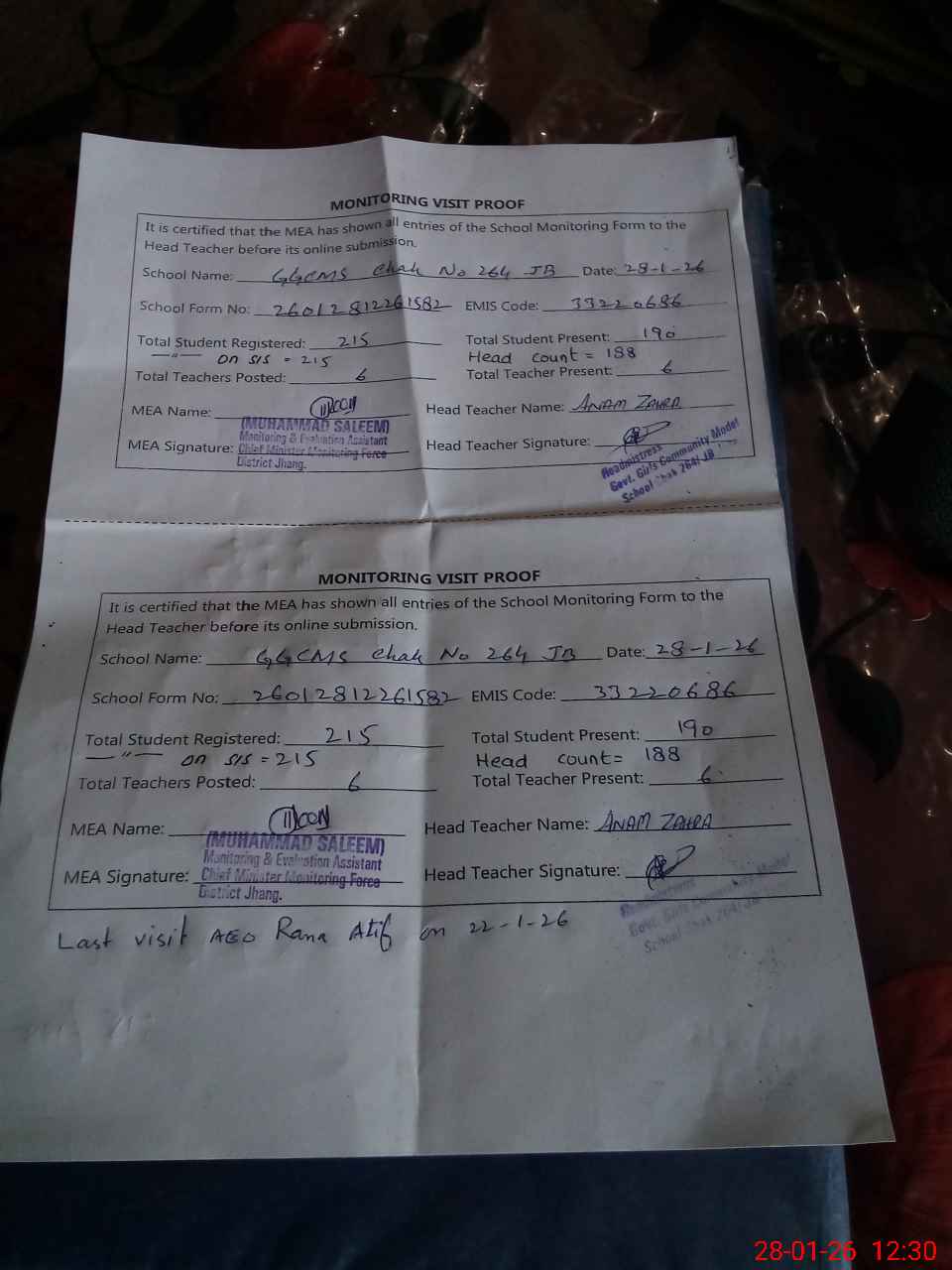 | EMIS Code: 33220686 | Name of School: GGCMS CHAK NO. 264 JB | |||