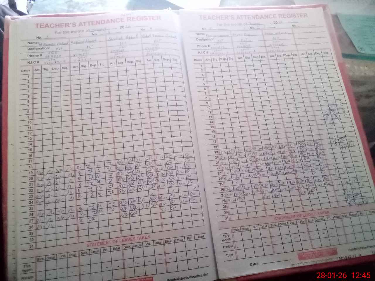 | CNIC | Full Name | Designation | R/C | Absence During Last Calender Month |