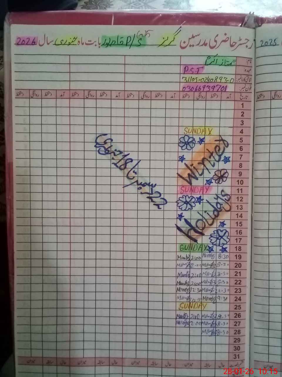 | Name: Mu**** Ak**** Designation: (School Headmaster's/Headmistress's) PST Phone/Cell Number: 03**** |