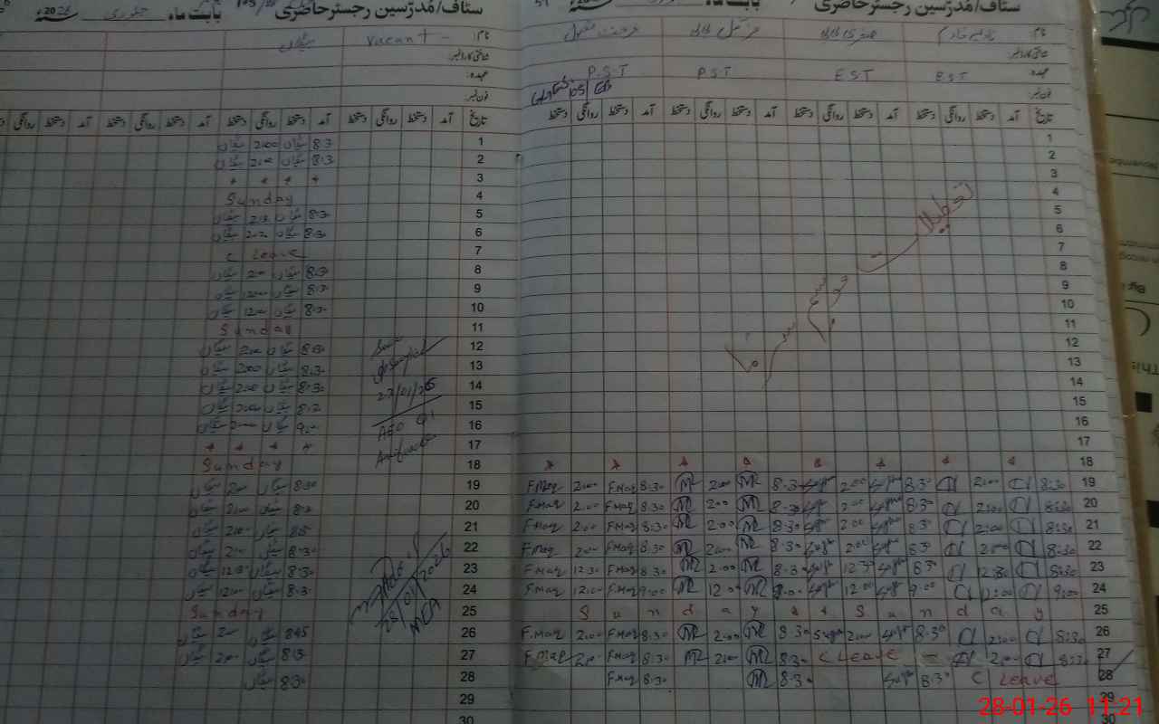 | CNIC | Full Name | Designation | R/C | Absence During Last Calender Month |