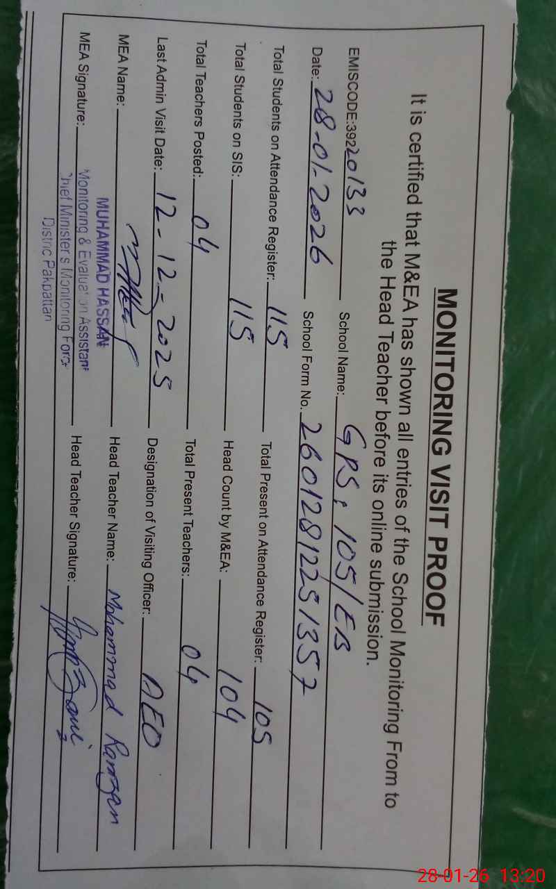 | EMIS Code: 39220133 | Name of School: GPS 105 EB ARIFWALA | |||