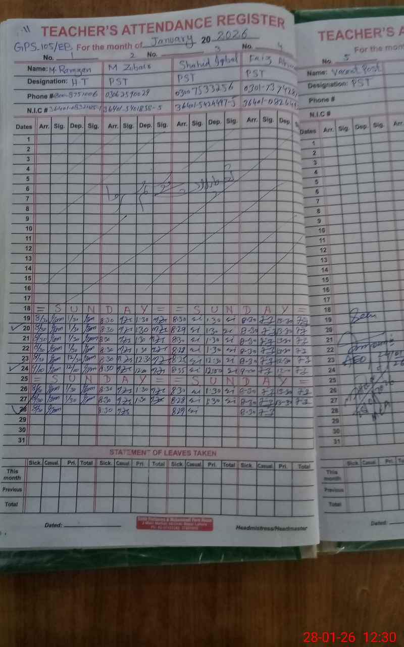 | Name: MU**** RA**** Designation: (School Headmaster's/Headmistress's) PST Phone/Cell Number: 03**** |