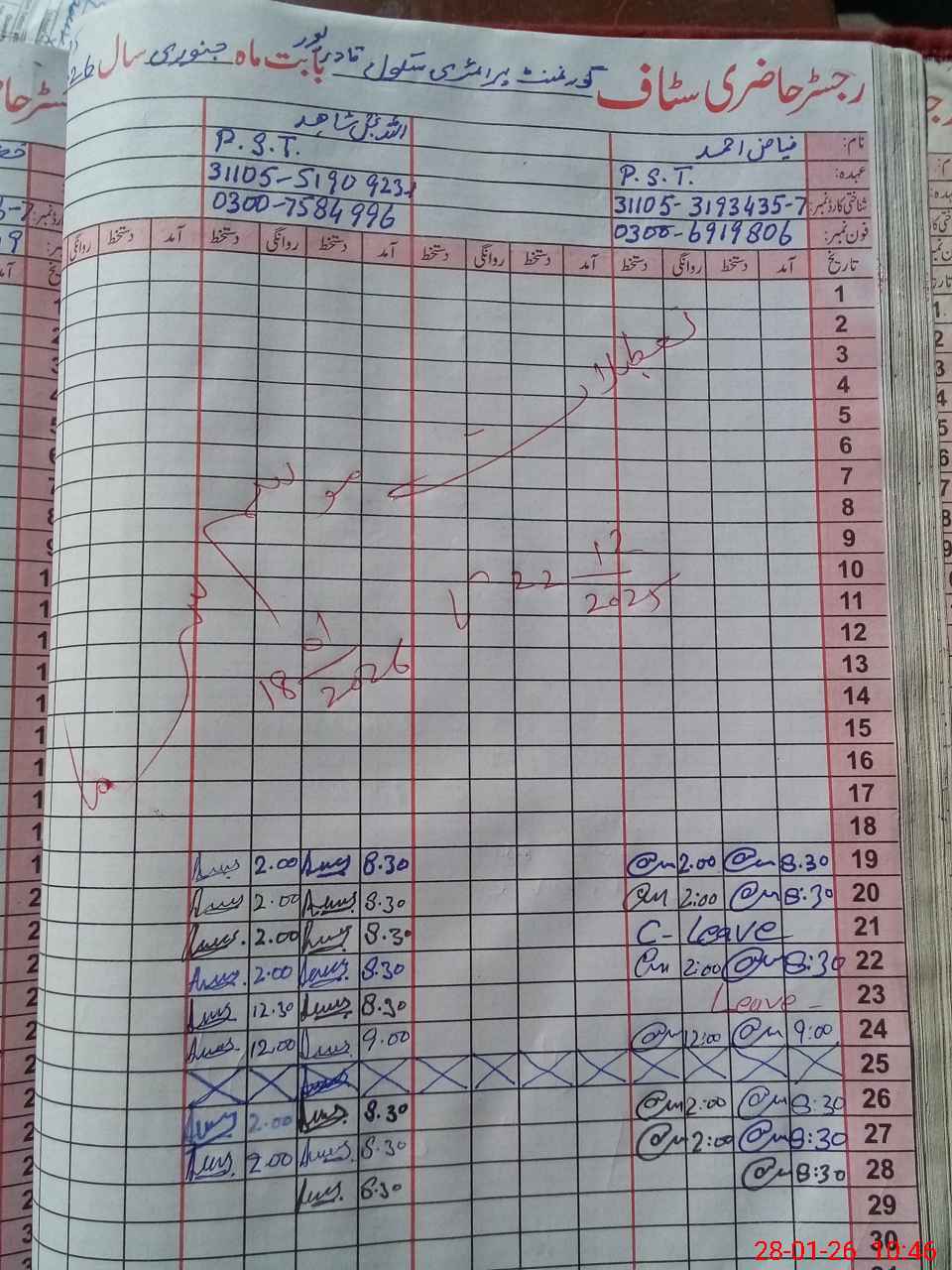 | Name: FI**** AH**** Designation: (School Headmaster's/Headmistress's) P S T Phone/Cell Number: 03**** |