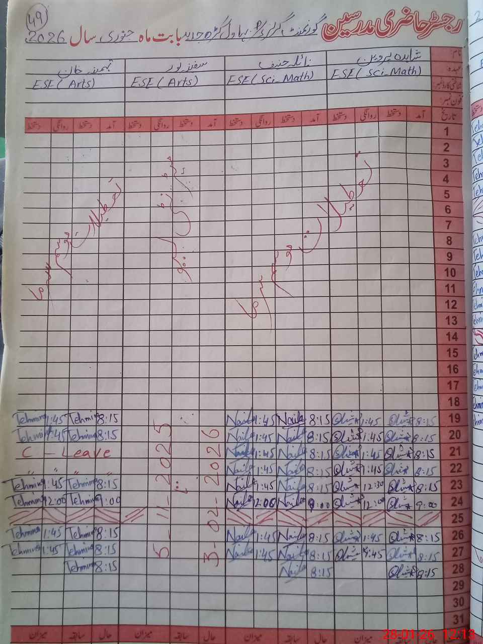 | CNIC | Full Name | Designation | R/C | Absence During Last Calender Month |