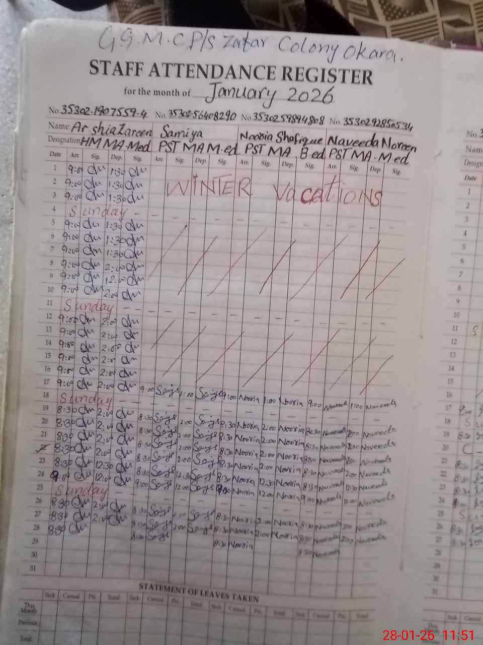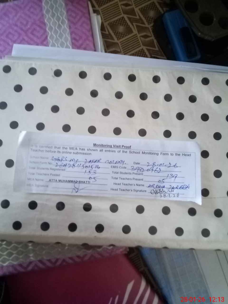 | EMIS Code: 39320962 | Name of School: GGPS MC ZAFAR COLONY | |||