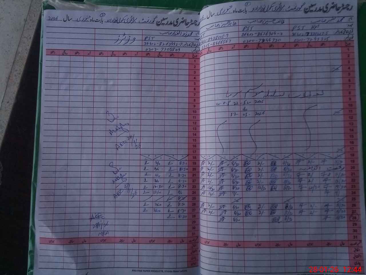 | Name: Mu**** Ba**** Designation: (School Headmaster's/Headmistress's) PST Phone/Cell Number: 03**** |