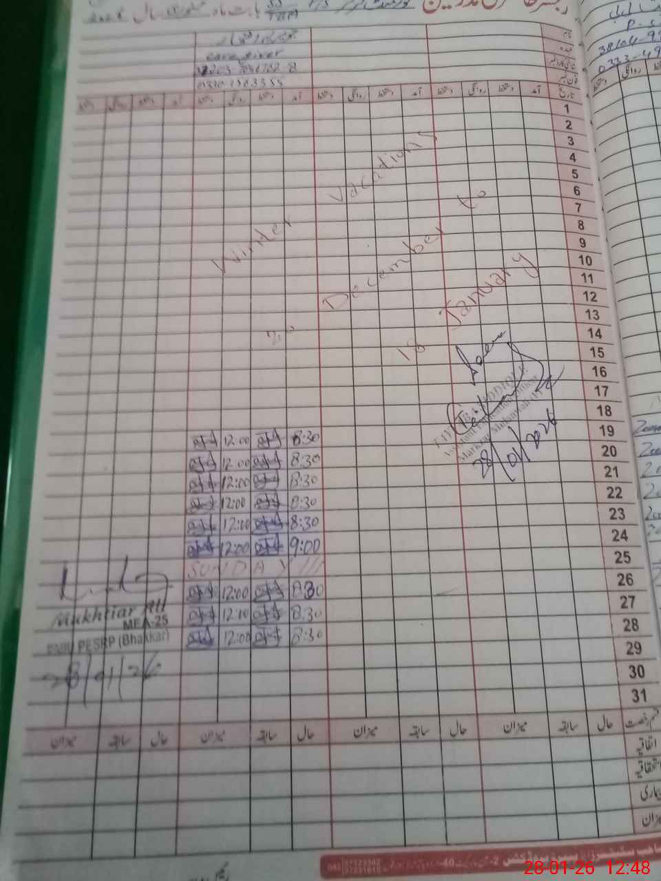 | CNIC | Full Name | Designation | R/C | Absence During Last Calender Month |