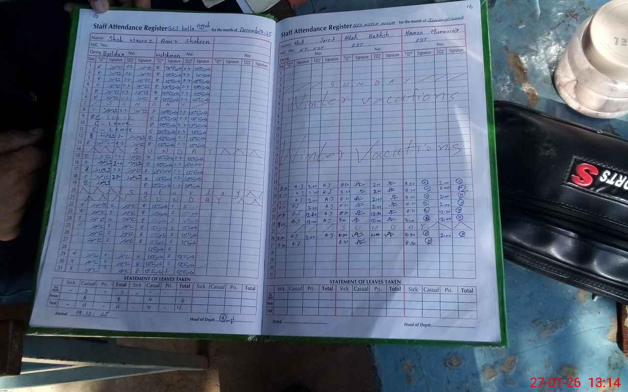 | CNIC | Full Name | Designation | R/C | Absence During Last Calender Month |